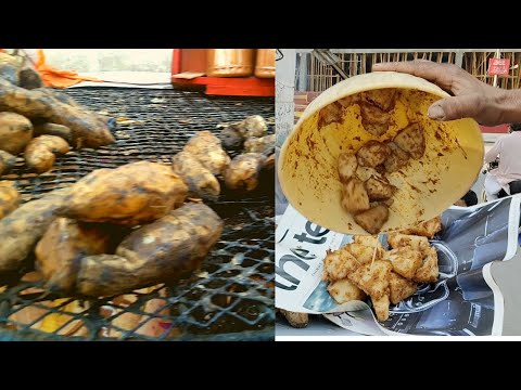 Amazing Roasted Sweet Potato Chat. Sharkandi Street Style at Karachi Food Street. people Love to Eat Sweet Potato in Winter Season. Shakar Qandi Chaat is famous in Pakistan Food Street in Winter Season. Must Watch this amazing Roasted شکرگندی with Spices.